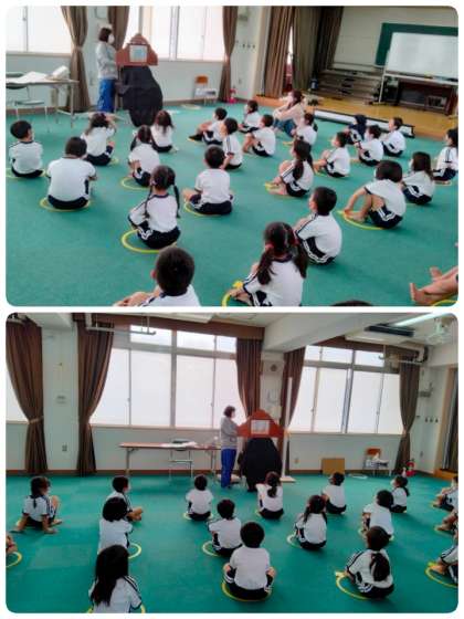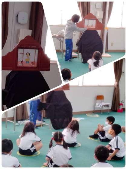 保健室の長橋先生から身長や体重の測り方の紙芝居を読んでいただきました。