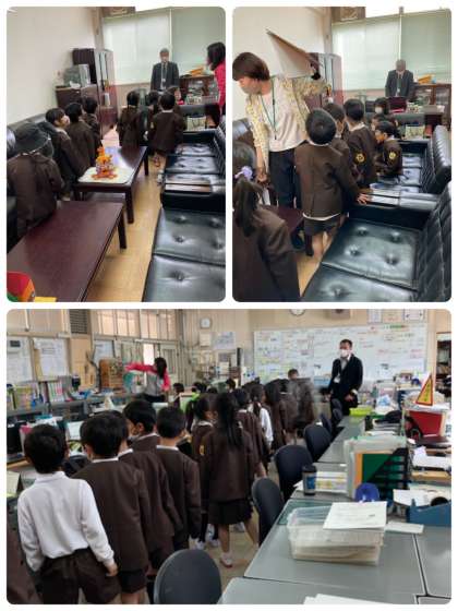 1年生が、担任の先生と学校の中を探検しました。校長室や職員室も見学しました。お行儀よく静かに、好奇心いっぱいの眼差しで、じっくり観察していて可愛いかったです。