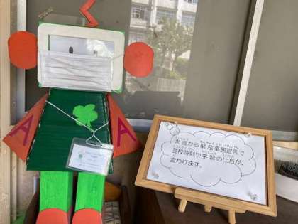 来週から緊急事態宣言のため、登校時刻や学習の方法がいつもと変わります。わかりにくいことは、学校へお問い合わせください。