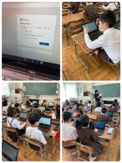 2年生は、ログイン接続することに挑戦しました。アルファベットの小文字や数字、アットマークなどを丁寧に入力できました。