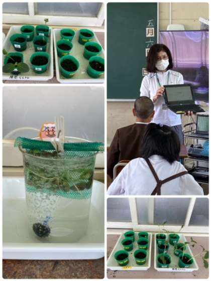 5年生では、理科の学習として、発芽の様子についてクラスごとに観察しています。