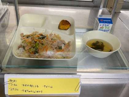 豚丼は食べやすく、かぼちゃもホクホクしていて、美味しい献立でした。