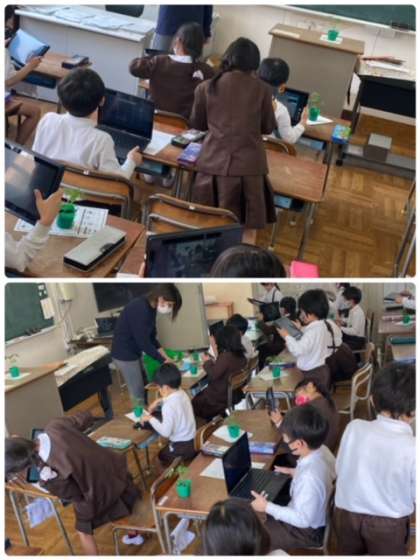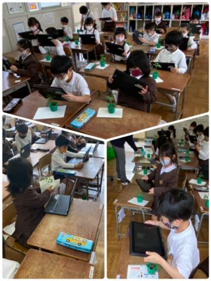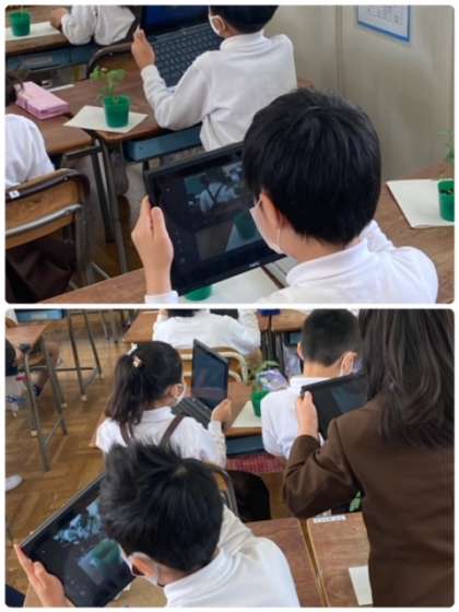 今日は学習者用端末のカメラ機能を使って撮影、記録していました。