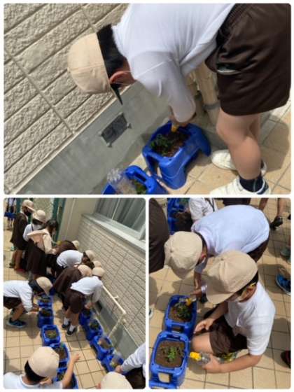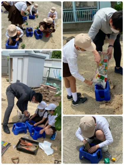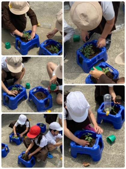 先程写真を撮影していた苗を、実際に鉢に植え替えました。