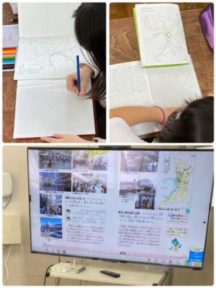 2組では、大阪府の交通について調べてノートにまとめていました。