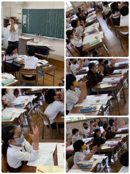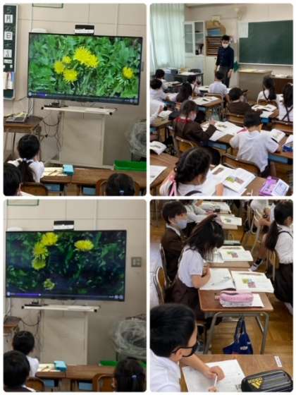 花が開く様子について読み取り、じっさいにその様子を手で表したり、ワークシートにまとめたりしていました。