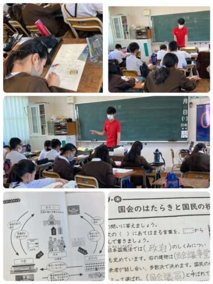 社会科では、国会・内閣・裁判・三権分立について復習をしていました。