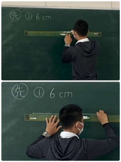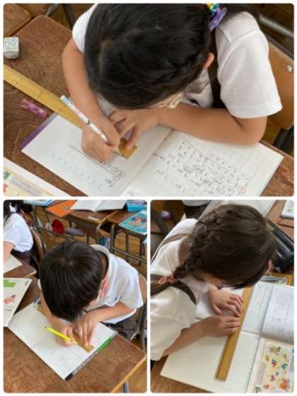 定規を使って長さをはかったり、直線を引いたりしていました。慣れるまでは直線を引くのも難しいようです。