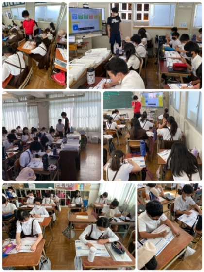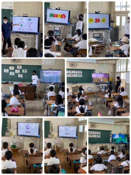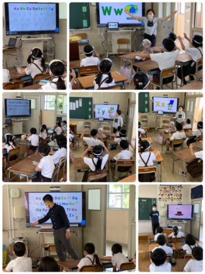 各学年の実態に応じてフォニックス活動を展開しています。6年生では、音声を聴き取り、ワークブックを仕上げていました。さすがです。低学年では、アルファベッドに慣れるところから始めています。