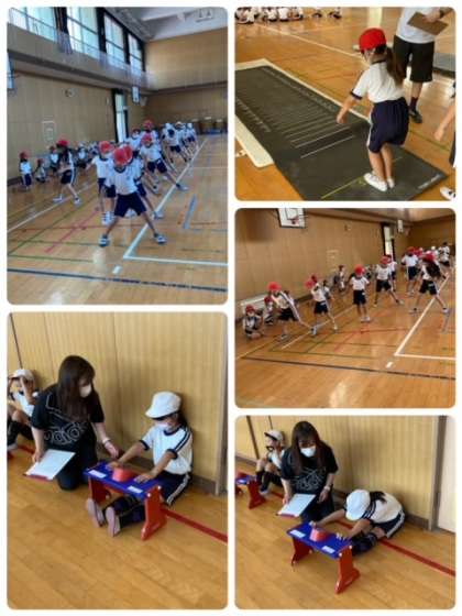 4時間目に3年生が、長座体前屈と反復横跳び、立ち幅跳びの新体力運動能力テストをしました。