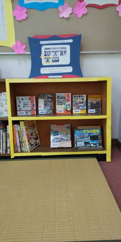 この前、朝礼でも紹介しましたが、昨年度の小学生新聞コンクールで表彰された副賞で、鉄道に関する本をたくさん増やしました。
