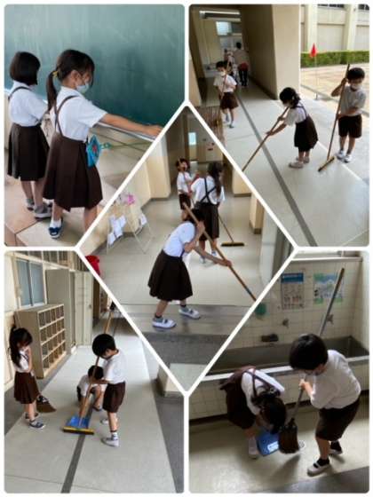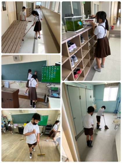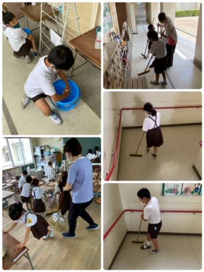 いつも頑張っている掃除を、今日は一段と頑張りました。1年生から5年生まで、しっかり感謝の気持ちで掃除を頑張りました。