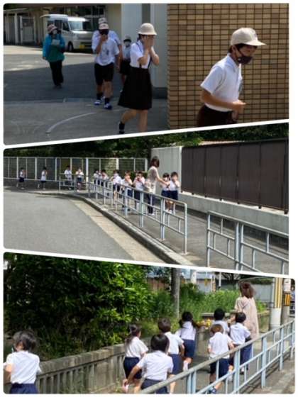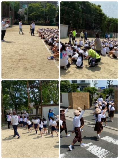 21日2時間目、理科室から出火の想定で、避難訓練を行いました。今年はじめての避難訓練には、大和田幼稚園も参加していただき、一緒にグランドへ避難しました。