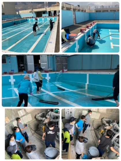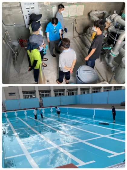 来週のプール水泳に向けて、放課後に教職員でプールを清掃しました。プールだけでなく、プール周辺の掃除も徹底的にしました。