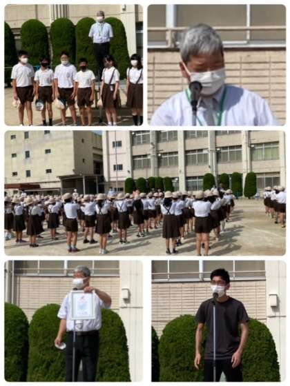 校長先生からは、ベルマークとプールのお話がありました。大和田小学校の皆さん方がベルマークを200万点集めたので表彰状をいただいたことが一つ。二つめは、昨年は5・6年生だけが入ったプール学習が全学年で始まることです。今年のプール学習は、命を守る大事な学習であることに加え、コロナを防いでの学習です。いつものように学年で入らず、クラスごとに入り、マスクはせずにゴーグルをします。1人ひとり目標を持って臨みましょう。