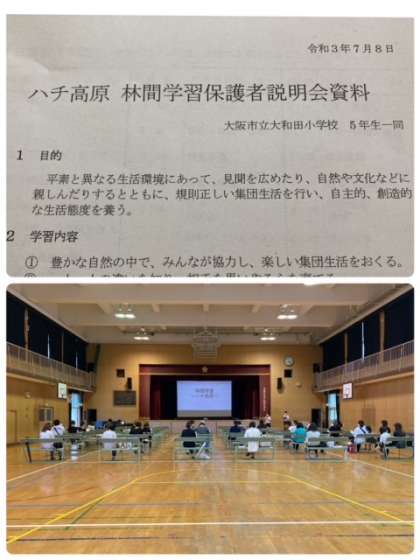 放課後に5年生の林間学習保護者説明会が講堂でありました。