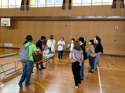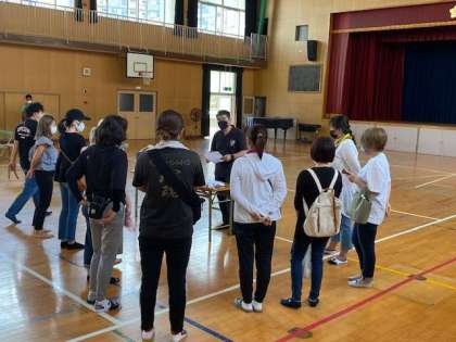 一泊研修の受付の準備として、PTAの皆さんが手伝ってくださっています。
