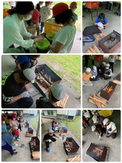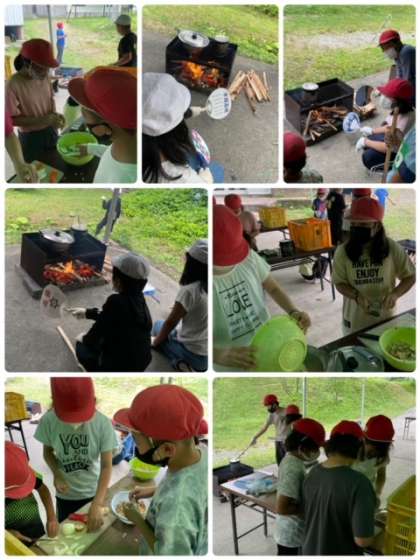 登山でポイントでゲットした食材をもとに、飯盒炊飯にチャレンジします。カレーライスを作りました。