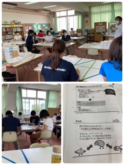 午後から、体育の研修が図書室で行われました。子どもたちに積極性が高まるという指導法です。脳の機能を向上させるために「手を使うことや声を出すこと」が重要だと学びました。