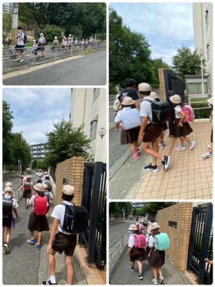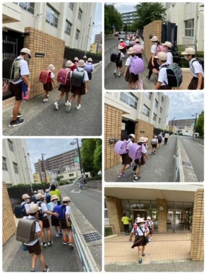 今回は、コロナ対策という事で、集まっても適度に距離を取るように指導しながら、災害時に備える学習を行い、教員の引率のもと下校しました。