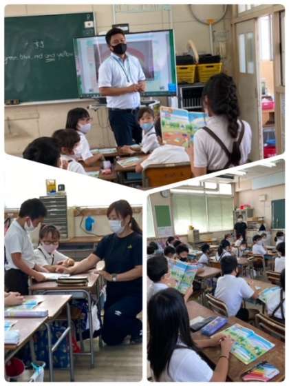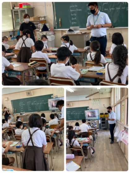 3年生が、”I like blue.”の授業をしていました。C-NETの先生に好きな色を次々に発表していました。