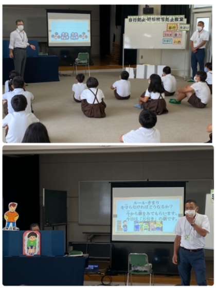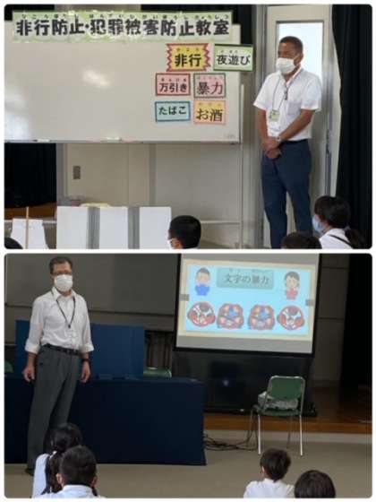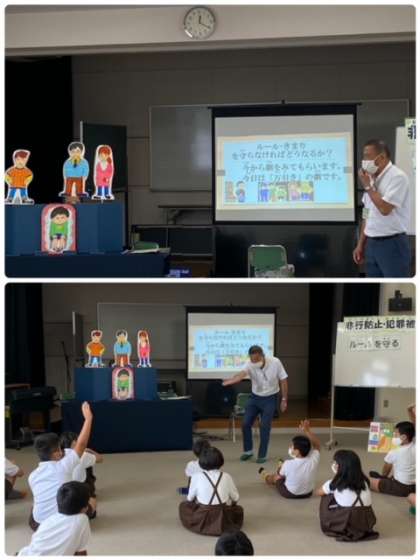 梅田サポートセンターの方に講師としてお越しいただき、暴力、言葉の暴力についてや、万引きの人形劇を通してルールを守ることの大切さを考えるお話をしていただき、5年生はしっかり考えて質問に答えていました。