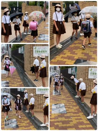 小雨が降ったりやんだりする天気でしたが、代表委員会があいさつ運動に取り組んでいました。