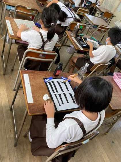 筆の入り、とめ、はらい、などに気をつけて、集中して取り組めていました。