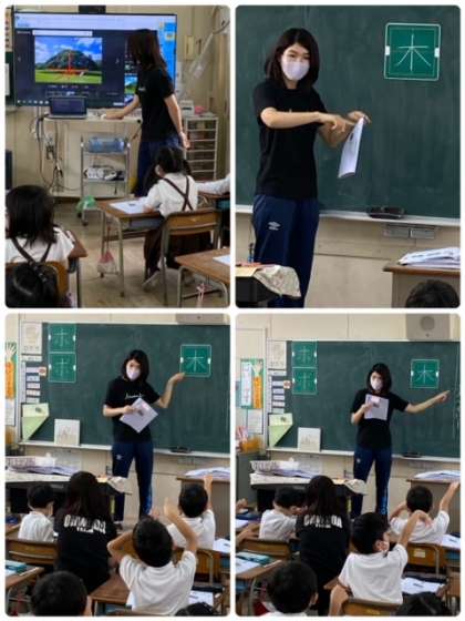 国語の学習では、カタカナと漢字を計画的に学んでいます。漢字の筆順もしっかり指で覚えてから書いています。