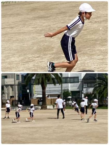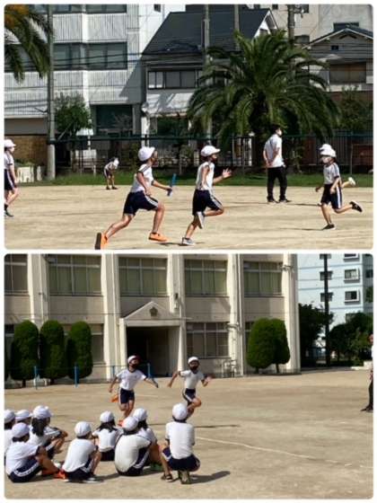 リレーのバトンパスの学習に取り組んでいます。