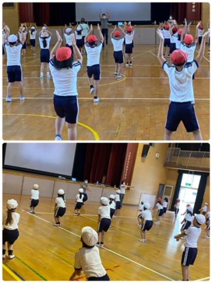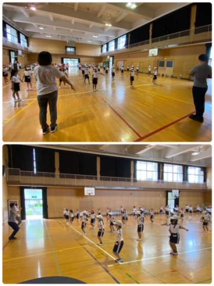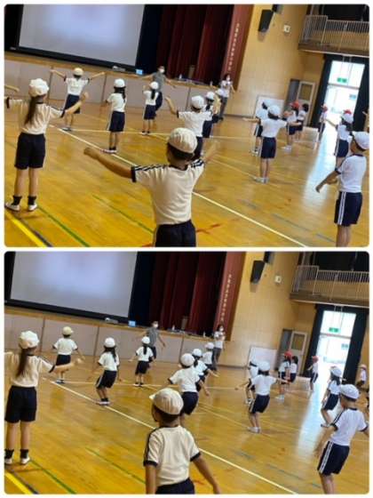 2年生も、表現活動として、リズムに合わせて、身体を動かしていました。なかなか難しい動きを、先生の手本をよく見て、しっかり真似ていました。