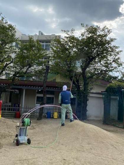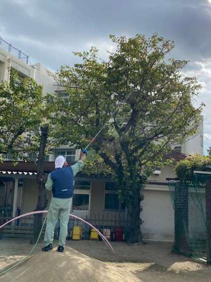 そこで、大和田幼稚園と連携し、本校管理作業員さんが、給食室等に害が及ばないように十分配慮した上で、適切な対応をしてくださいました。