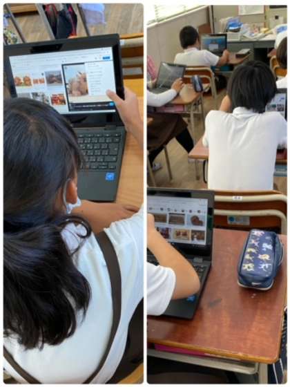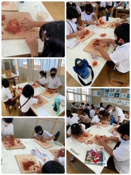 まずは、端末を使って、シーサーについて調べてみました。そして、つくるイメージを固めたら、いよいよスタート。