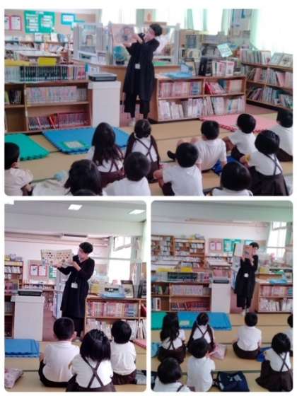 図書の時間に図書館補助員の北山さんが読み聞かせをしてくださいました。