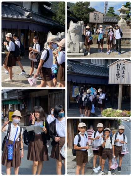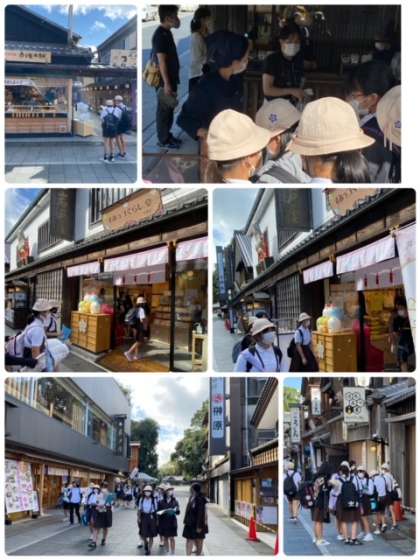 おかげ横丁でのお楽しみ、お土産ツアーの始まりです。みんな計画してきた通り、お店を巡っています。