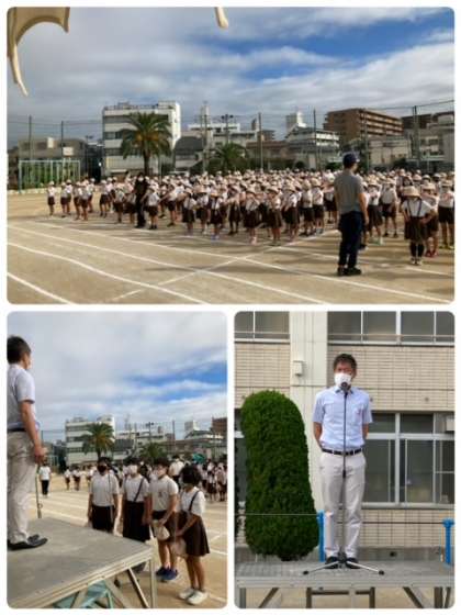 教頭先生からは、6年生が三重、志摩方向に1泊2日で修学旅行へ行っているお話や運動会のお話がありました。