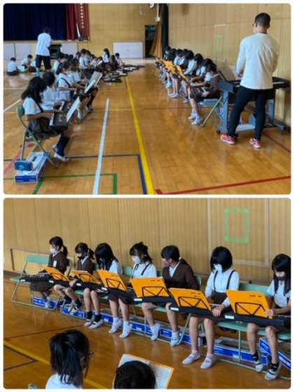 講堂で合奏の練習をしていました。
