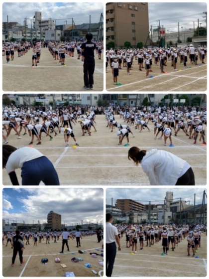 開会式に続いて、全員で準備運動として、ラジオ体操を行いました。