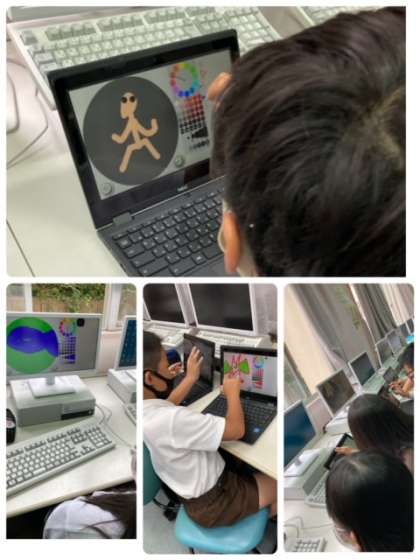 ビスケットというアプリで、絵が動かすことが出来るプログラミングをしていました。自分で作ったイラストが、パラパラ漫画のように動いていました。