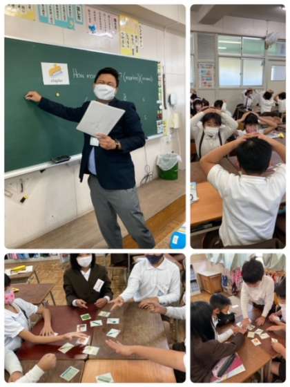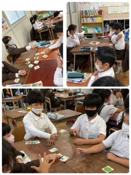 最後に文房具の名前を聞きとって、カードを素早く取るカルタゲームをして、盛り上がりました。同時に同じカードをタッチしたら、ジャンケンをして勝った人がカードをもらえます。