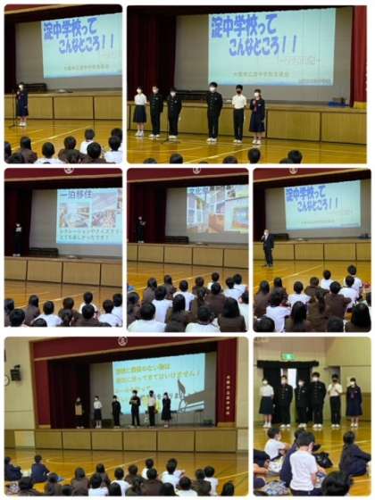 6年生が午後淀中学校に行き、中学校生活について体験させていただきました。まずは、生徒会からの紹介を聞き、その後、授業を体験しました。