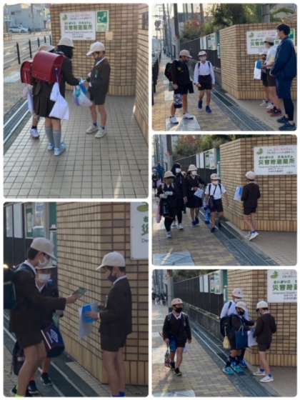 今日からあいさつ運動とユニセフ募金が始まりました。代表委員会が元気な声をかけています。