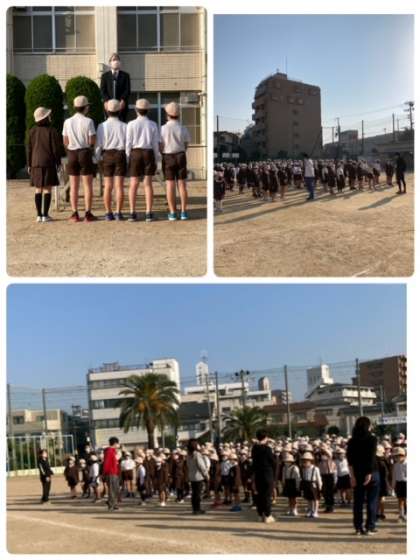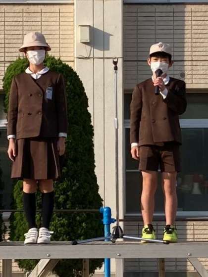 今朝は、児童朝会の前に学習発表会の閉会式がありました。