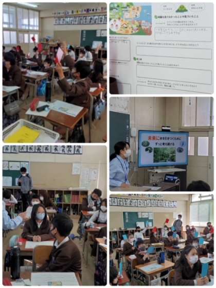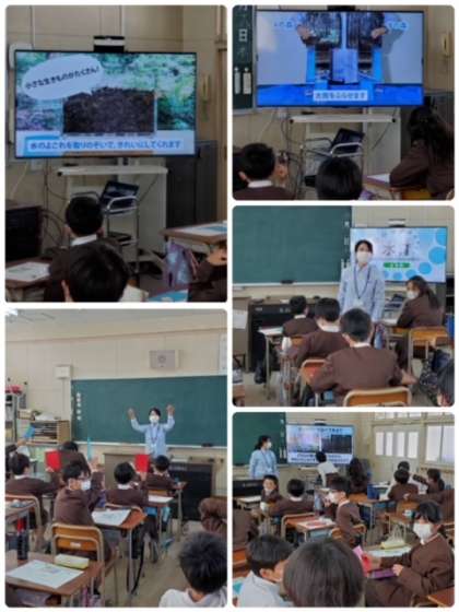 2組は『サントリー』のジュースや炭酸飲料に多く使われているものが水であることからスタートし、動画とクイズ形式で学びました。