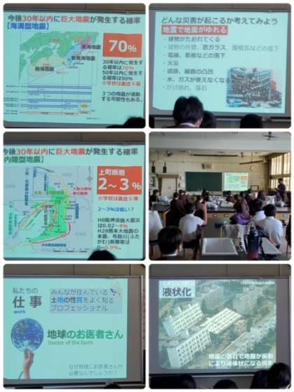 『応用地質株式会社』にお越しいただき、地震が起こる仕組みと、南海トラフや上町断層の地震が起こったらどうなるか、どうするかを学びました。