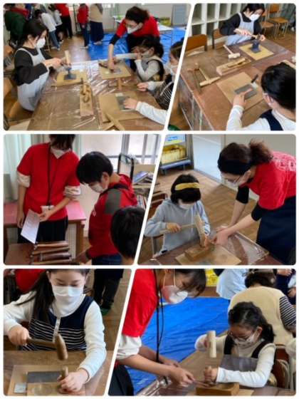 11月20日の午後、クラフトパークから講師の方々をお招きし、ネックレスやスプーンを自分で作る親子ものづくり教室を開催しました。
