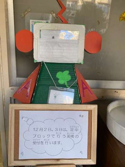 今日、明日と淀中ブロックで取り組んでいる英検の受付をしています。申し込まれる方はお忘れないようによろしくお願いします。