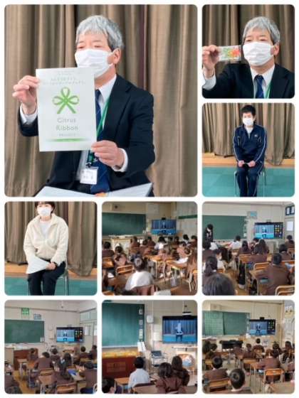 児童朝会では、校長先生がシトラスリボンについてお話しされました。