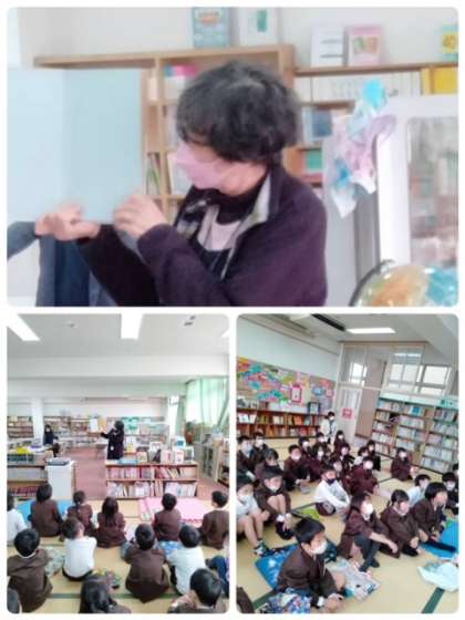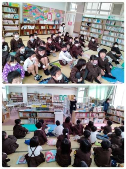 図書館補助員の北山さんが、「しろくまのパンツ」の読み聞かせをしてくださいました。みんな楽しんで聞いていました。