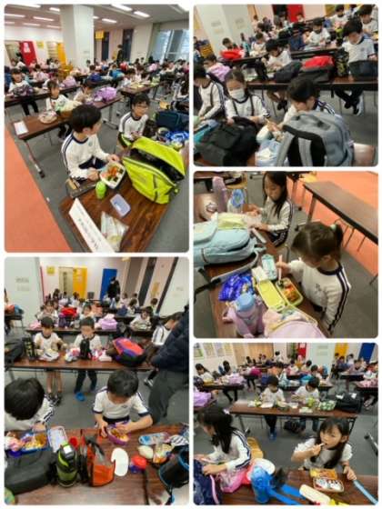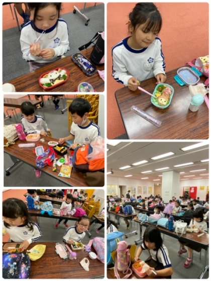 しっかり楽しんだ後は、お弁当、おやつタイムです。食堂スペースの都合で、いつもより早い時間帯での昼食です。